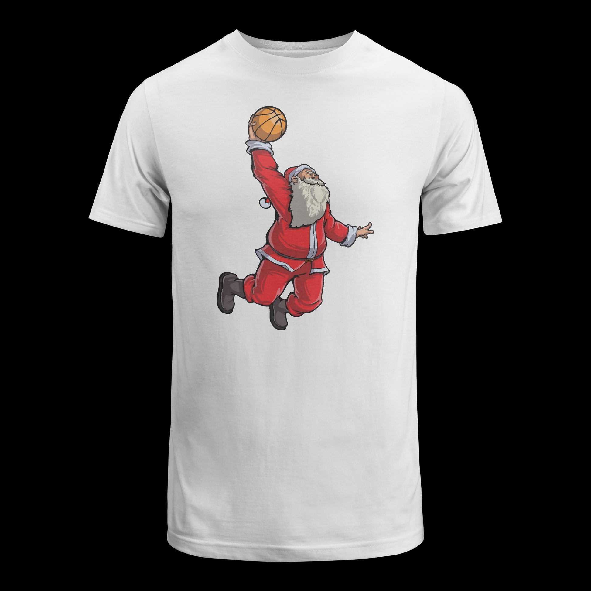 "Get in the holiday spirit with this slam dunking Basketball Santa t-shirt! Featuring a cool and festive design of Santa Claus soaring through the air to make an epic dunk, this shirt is the perfect gift for any basketball lover or sports fan. With its comfortable fit and bold graphic, it's sure to become a favorite in your holiday wardrobe. Whether you're hitting the court or enjoying some festive fun, this Christmas basketball tee is a great way to show your love for the game and spread some holiday cheer."