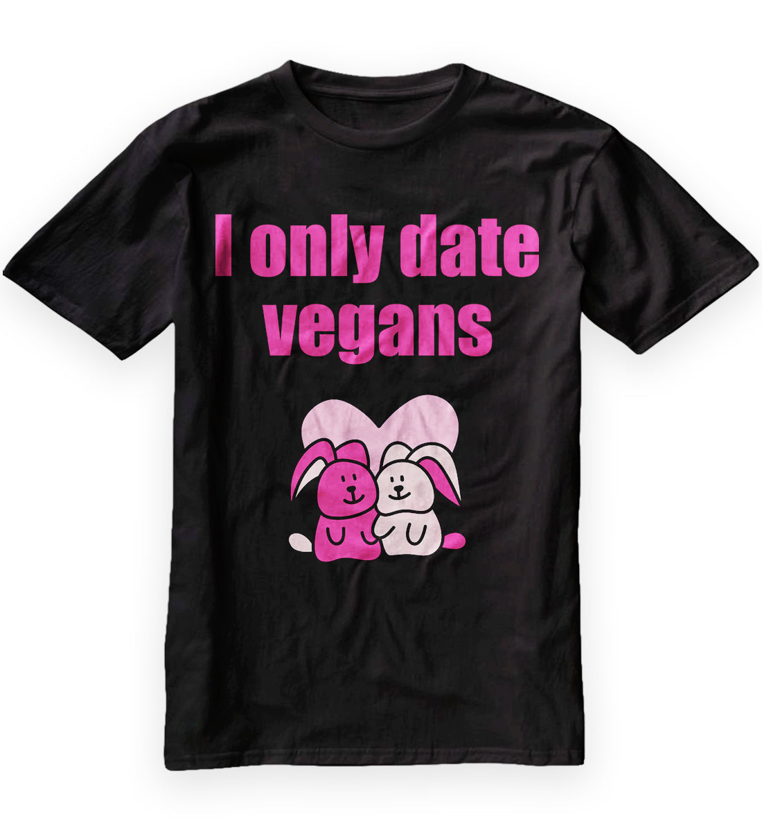 Looking for a funny and unique Valentine's Day shirt? Check out this hilarious design that's perfect for any vegan! The shirt features two adorable bunnies with the text "I Only Date Vegans" written in bold letters. It's sure to make anyone laugh, whether they're a vegan or not. Show off your sense of humor and love for animals with this one-of-a-kind tee. It's a great gift for your vegan sweetheart or anyone who appreciates a good joke. So, what are you waiting for? Get your hands on this shirt and spread some laughter this Valentine's Day!