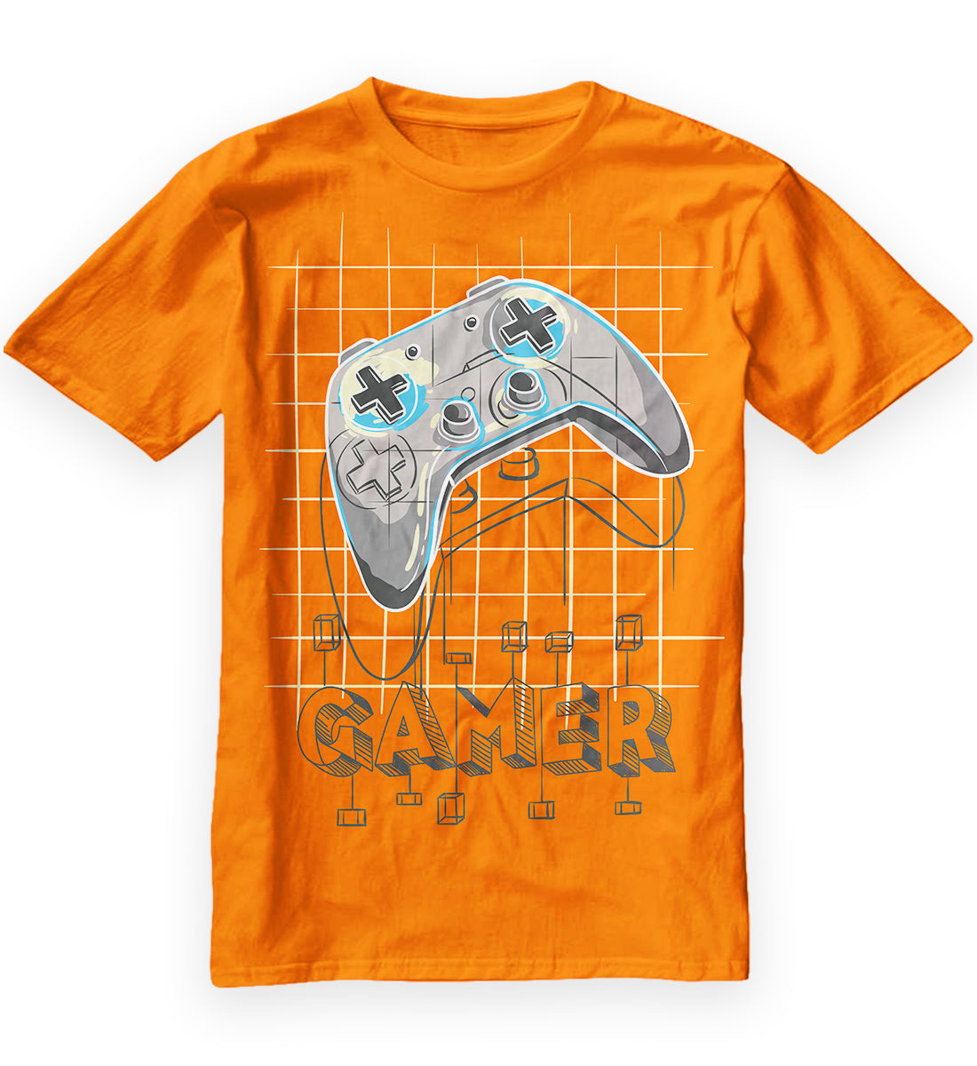 Looking for a t-shirt that'll make your little gamer stand out? Look no further than this awesome orange gamer tee! With its eye-catching design and vibrant orange color, this shirt is perfect for kids who love to show off their love of gaming. This shirt is the perfect addition to any gaming fan's wardrobe. So why wait? Grab one today and let your little gamer show off their style!