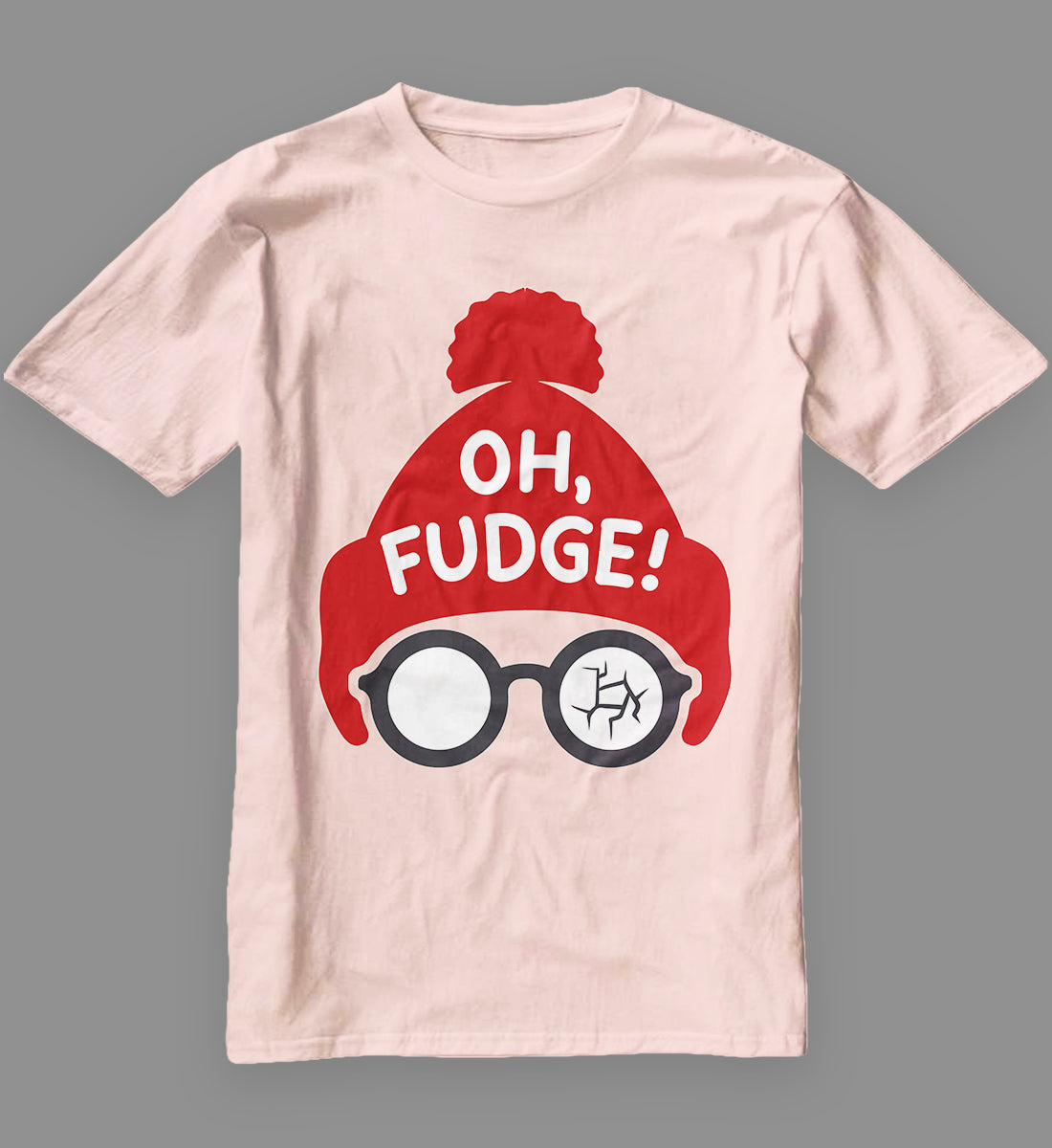 The phrase "Oh Fudge" is a popular catchphrase from the classic Christmas movie "A Christmas Story". This humorous expression is often used to express frustration or surprise in a lighthearted way during the holiday season. A t-shirt featuring the phrase "Oh Fudge" is a fun and playful way to add some holiday spirit to your wardrobe. With its bold lettering and festive color scheme, it is sure to bring a smile to the faces of those around you.
