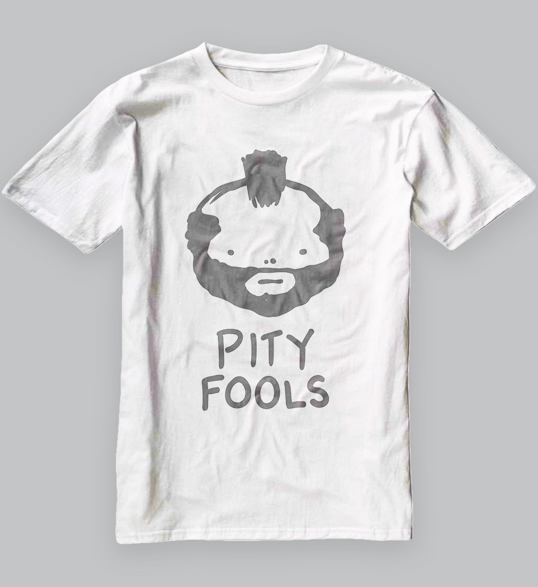 Are you a fan of Mr. T and his iconic catchphrase "I pity the fool"? Then this shirt is perfect for you! Featuring a sketch of Mr. T himself with his famous quote, this tee is sure to turn heads and start conversations. Whether you're a fan of his work in "The A-Team" or just love his larger-than-life personality, you'll love wearing this shirt and showing off your love for the man himself. Made from soft and comfortable materials, it's perfect for any casual occasion or just lounging around the house. So why not add some Mr. T flair to your wardrobe and grab this shirt today?