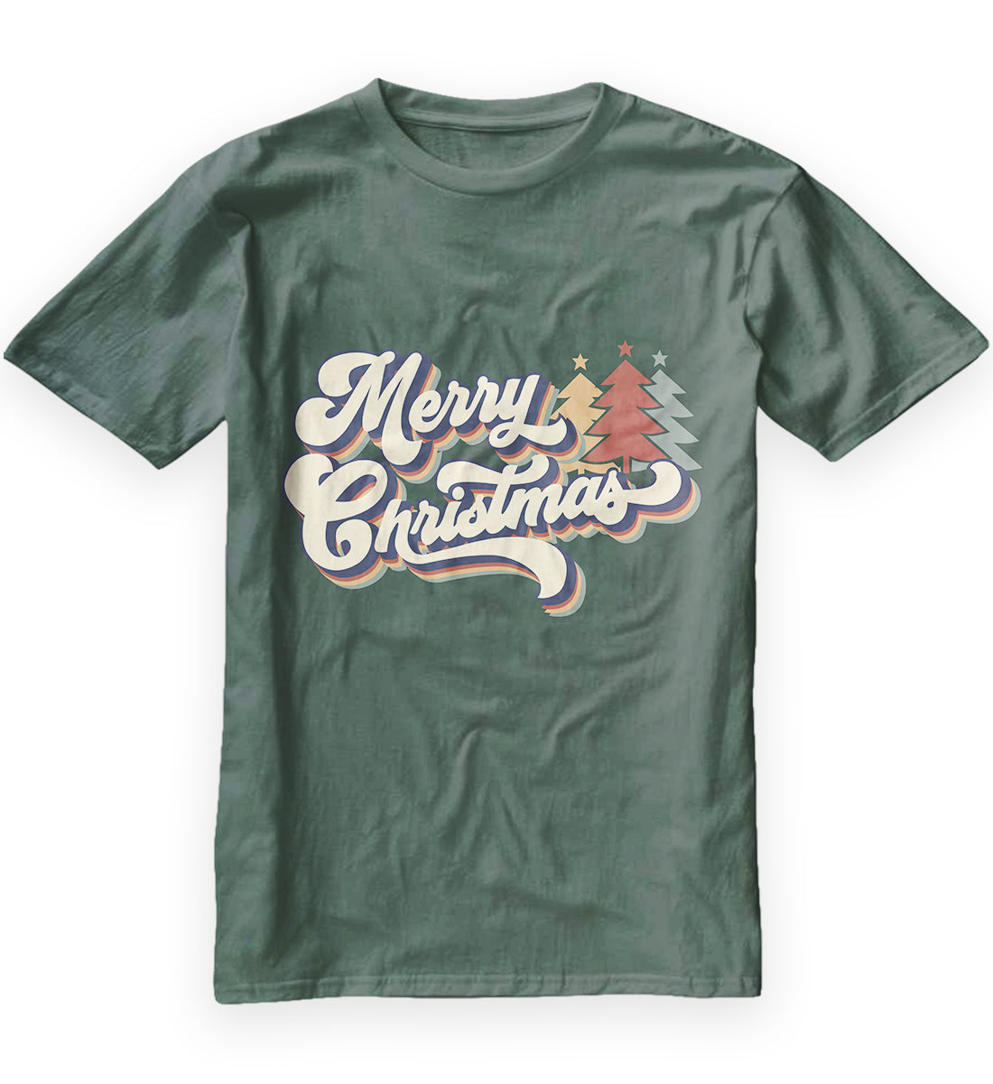 "Vintage Merry Christmas" is a classic holiday t-shirt that will bring a touch of nostalgia to your wardrobe. The shirt features a festive design with the words "Merry Christmas" in a vintage-inspired font, surrounded by a wreath of holly leaves and berries. The design is printed on a high-quality t-shirt that is comfortable to wear all day long, whether you're decorating the tree or enjoying a cup of hot cocoa by the fire. Show off your holiday spirit with this charming vintage-inspired tee.