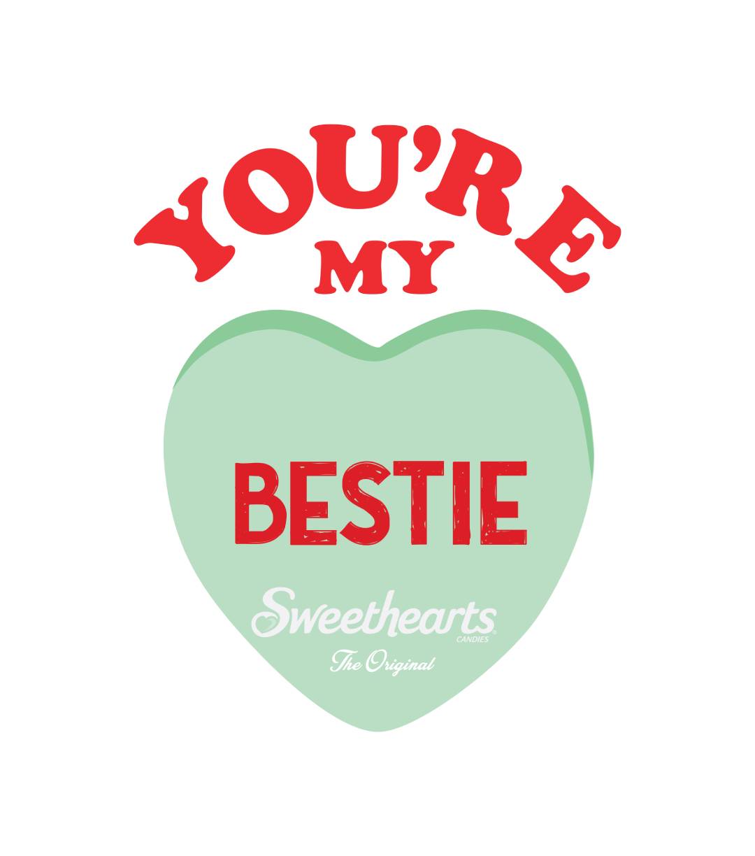 Looking for the perfect shirt to show your best friend some love? Look no further than this "You're My Bestie" Sweethearts shirt! The classic candy-inspired design is a cute and playful way to show your appreciation for your closest pal. The soft and comfortable fabric will make this shirt a go-to choice for any casual occasion. Whether you're grabbing brunch or having a movie night in, this shirt is sure to become a wardrobe staple for any best friend duo. So why not show your BFF some love and grab one for each of you today?